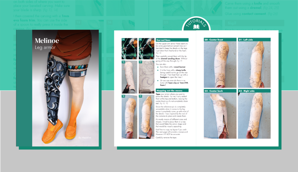 The tutorials cover in detail the entire process of making Melinoe’s outfit from patterning, foamsmithing, sewing, rigging, painting to weathering. They’re all written in English. In total they contain :